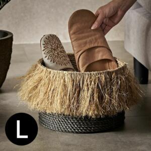 ラフィアのフリンジバスケット