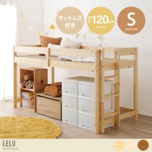 [高さ120] 垂直ハシゴの木製ロフトベッド 薄型四つ折りマットレスSET