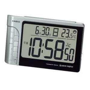 表示が見やすい大型液晶の温度計表示機能付き目覚まし時計です。好みで設定した温度の±2℃以内であることをマークでお知らせする快適マーク機能付きで室内の温度管理などに便利です。また、全ての操作ボタンを前面に集約したフロント操作タイプなので、表示を見ながら操作が簡単に行えます。 ケースサイズ(縦×横×厚さ):109 × 180 × 57 mm 質量:320 g カラー:シルバー ケース材質:樹脂 時刻修正:電波時計 日本全国対応 使用電源・電池寿命 使用電池:マンガン乾電池単3形×2 電池寿命:約1年 センサー機能:温度計測機能(快適温度をマークでお知らせ) 風防:樹脂 アラーム/時報:電子音アラーム(5段階で変化) スヌーズ機能:止めても止めてもまた鳴るスヌーズ機能(約5分おきに最大7回繰り返す) ライト:LEDライト(残照機能付き) カレンダー:月・日・曜日表示 フルオートカレンダー 電波受信インジケーター 電波受信インジケーター(電波受信状態をレベル表示) 電波受信マーク表示(電波受信状況をマーク点灯でお知らせ) 精度:※電波受信が行われない場合は、通常のクオーツ精度(平均月差±30秒)で動作します。 その他機能:12/24時間制表示切替 時刻修正詳細 ※この製品は日本電波仕様です。海外で使用した場合、まれに日本標準電波を受信して、日本の時間を表示してしまうことがあります。 海外でのご使用には対応しておりません。 電波受信機能:自動受信/手動受信、自動選局機能付き(受信電波=長波標準電波JJY、周波数=40kHz/60kHz)