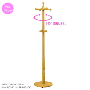 360度回転式【ポールスタンド/VARA773】アンティークブラウン色素材はマイアン材・ウレタン塗装/アジャスター付です。スタイリッシュでいろんな場所で活躍間違いなし!