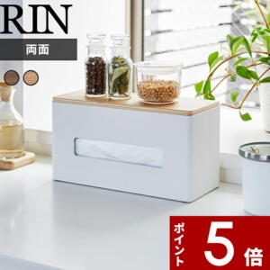 RIN(リン) 両面ティッシュケース ティッシュボックス ボックスティッシュケース 木目 ウッド ふた付き ティッシュ ティッシュペーパー キッチン 台所 リビング ダイニング 洗面所 rin 山崎実業 ホワイト ブラック