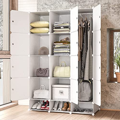 Probasto ワードローブ 組み立て式 クローゼット 衣類ケース 収納ボックス 衣類収納 DIY収納 収納棚 DIY可能 環境保護樹脂 鉄筋の骨組 防水 防塵 耐荷重 大容量 12box ポールハンガー2本付き マグネットキャッチ12枚付き 日本語説明書付き