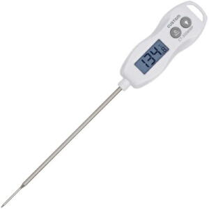 商品説明 商品名:防水デジタル温度計 CT-375MWP品番:BOVZ601 ●幅×奥行×高さ(mm):30×16×380 ●重量(g):45●電源:CR2032(3V)コイン型電池×1(付属) ●センサ:サーミスタ ●プローブ:φ3.5×275mm(先端Φ1.8mm)、18-8ステンレス ●測定範囲:-50~300℃ ●分解能:0.1℃ ●サンプリング:約2回/秒 ●オートパワーオフ:機能あり(10分、解除不可) ●使用温湿度:0~50℃、75%RH以下 ●保存温湿度:-20~65℃、90%RH以下 ●防水性:IP66準拠 ●【付属品】取扱説明書(保証書付き)、プローブキャップ、CR2032(3V)コイン型電池×1 商品説明●防水規格IP66準拠の防水ペン型温度計 ●275mmの長いプローブで奥深くの温度も測りやすい ●プローブの先端が1.8mmと細いため、応答速度が速く、被測定物へのさし傷が目立ちにくい ●内臓の磁石で金属面に取り付けることができます。 ●プローブ:φ3.5×275mm(先端Φ1.8mm)