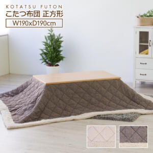 材質 ポリエステル 商品サイズ W190cm×D190cm 商品重量 2.5kg 注意事項 ※天板サイズ:正方形80×80cm以下※お使いのモニターの発色具合によって、実際のものと色が異なる場合がございます。 原産地 中国立体柄でふわっとした肌触りなめらかなコタツ布団です。裏面のフリース生地が保温力をアップしてくれます。