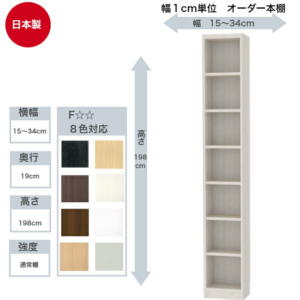 日本製 本棚 F★★★★ 低ホルムアルデヒド オーダー本棚 収納 棚 書棚 ラック サイズオーダー 薄型 【送料無料】オーダーマルチラック 奥行19cm 高さ200cm 幅35cm【標準タイプ】