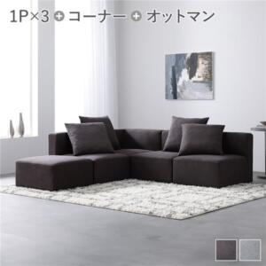 システムソファ セット〔 SET.F コーナーソファ×2+1P×1 チャコールブラウン 〕 ソファセット 洗える ウォッシャブル カバーリング ポケットコイル ローソファ 3人掛けソファ モジュールソファ ユニットソファ レイアウト自由 インテリア家具