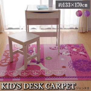 送料無料 デスクカーペット 女の子 エッフェル柄 ジェンヌ ツー 約133×170cm 子供部屋 ラグ マット 勉強机用 学習デスク用 デスクマット かわいい 人気 キッズ フロアマット ラグカーペット おしゃれ