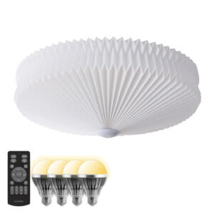 【製品の仕様】 商品サイズ:幅 □49.0㎝ 高 16.0cm 質量 2.4kg コード長 37.5cm 全高 53.5cm(器具含む高さ約26.0cm~約53.5cmで調節可能) 適用畳数:~8畳用(定格光束:3350lm/W) 消費電力:23.6W (消費効率:141.9lm/W)/年間電気代:約1280円 省エネ基準達成率:141% 色合い:昼光色(6500K)/演色性:Ra83 引きひもスイッチ付き:全灯⇒約50%調光⇒LED常夜灯⇒消灯