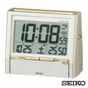 セイコークロックDA206W 音声報時 デジタル時計 電波修正機能商品仕様枠材 プラスチック枠 白パール塗装前面:プラスチック サイズ・重さ 108x122x62mm 260g 電池 単3(アルカリ)×2 (電池寿命約1年間) 機能 •電波修正機能(40kHz/60kHz自動選局・受信OFF機能つき) •音声報時(時刻・カレンダー・温湿度) •音声アラーム •アラームオートストップ機能(約5分間) •スヌーズつき •音量切替(大・小) •アラームモニター機能 •ライトつき •2099年までのフルオートカレンダー機能 •温湿度表示(温度測定範囲:0℃〜40℃ 測定精度:±2℃ 湿度測定範囲:25%RH〜85%RH 測定精度:±8%(25℃)) •12時間制/24時間制切替式 •オートスピーキング機能(1分毎に15分間) •バイリンガル(英語・日本語)切替 •点字の取扱説明書のご用意もあります。