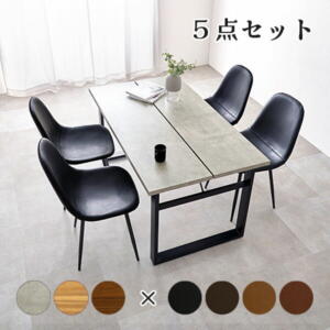ダイニングテーブル ダイニングチェア おしゃれ シンプル ナチュラル シック 黒脚 木目 コンクリート調 棚付き ゆったり 耐久性 [ダイニング5点セット]