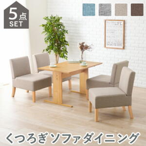 ご購入前に必ずにて商品の詳細をご確認下さい。また、商品に関して何かご不明な点は下記までお問い合せ下さい。萩原株式会社 スリーアイ本部086-523-4560※メーカーのサポート体制は予告無く変更・終了する場合がございます。※当商品は代金引換をご利用頂く事が出来ません。買い物かごのお支払方法にて代金引換をお選び頂かない様お願い申し上げます。 広い座面でゆっくりくつろげるダイニングセット。■うれしい5点セット テーブル×1 チェア×4 ■ゆとりある奥行き 一般的なものと比べると奥行きが深めなので男性でもゆったり座れます。 広い座面で体を支えるので長時間座っても心地よい。 ■チェアにぴったりの高さ ダイニングテーブルとして使えるテーブルは、チェアに合わせた低めの高さ。 ■省スペースでも出入りがスムーズ「T字脚」テーブル 角にテーブル脚がないと出入りがラク! ◇サイズ ・テーブル:(約)幅110×奥行70×高さ65cm ・チェア(1P):(約)幅51×奥行64.5×高さ77×座面高42cm ◇素材 ・主材:天然木 ・天板:天然木化粧繊維板 ・張地:ポリエステル ・クッション材:ウレタンフォーム ◇組立式