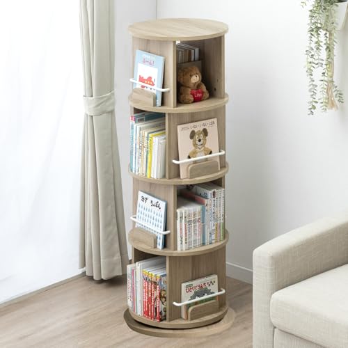 タンスのゲン 絵本ラック 回転式 4段 スリム 木製 回転 本棚 絵本棚 収納ラック 子供用 シンプル デザイン 49600274(100467)