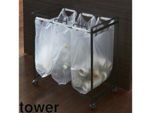 分別ダストワゴン タワー 3分別 ホワイト【レジ袋の持ち手を掛けるだけで分別自在】