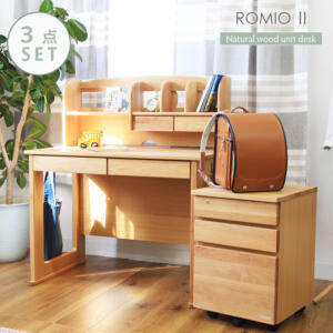 内容 学習机3点セット(本棚、デスク、チェスト)+L型デスクライト カラー ウォールナット、ホワイト、ナチュラル、ダークブラウン サイズ(cm) 【デスク】幅100×奥行き60×高さ71【本棚】幅100×奥行き60×高さ38.5(板厚1.8cm)※可動棚のダボ間ピッチは3.2【チェスト】幅38.5×奥行き39.5×高さ54【引き出しの内寸】(本棚)幅21×奥行き13.5×高さ7.5(デスク左)幅38×奥行き32×高さ5(デスク右)幅38×奥行き32×高さ5(チェスト上段)幅28.5×奥行き32×高さ5.5(チェスト下段)幅28.5×奥行き32×高さ25.5 材質 MDF、3Dシート 特徴 【デスク】・幅100cmの広々スペース・角丸仕様でお子様も安心・デスク下にも収納スペース【本棚】・3段階可動棚・デスクライト置き場・2口コンセント【チェスト】・すっきりなライン取っ手・ストッパー付きキャスター・開け閉め楽々なスライドレール・高さのあるチェスト下段収納 梱包サイズ(cm)・重量 【デスク】幅104×奥行き61.5×高さ17.5(約31kg)【本棚】幅100.5×奥行き23×高さ40(約13kg)【チェスト】幅51×奥行き42×高さ22(約18kg) 補足・注意 【お客様組み立て】・画像にある学習椅子、小物は付属していません。・配送時に埃がつくことがございます。組立時に柔らかい布で乾拭きしてください。・デスク脚の取り付けについて組立説明書ではワッシャーを使用してネジを取り付けるようご案内していますが、ネジが回りにくい場合は、一度ワッシャーを外してお試しください。・実物に近い状態で撮影していますが、撮影時の光の加減やお客様のPC設定により若干の色合いが異なる場合がございます。・曲線部分や若干の個体差により、多少の誤差が生じることがございます。・旧タイプのレビューも含まれています。・商品は予告なく仕様が変更される場合があります。ご了承ください。 送料 送料無料ただし、東北・北海道は追加送料が必要となります。(沖縄・離島は別途お見積り)※追加料金が必要な場合、買い物カゴでは再計算されません。料金確定後、こちらからご連絡させていただきます。 ▼ 単品販売はこちら ▼