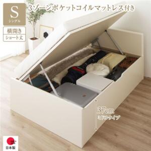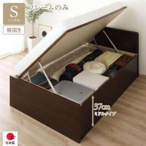 ■サイズ・色違い・関連商品関連商品の検索結果一覧はこちら■商品内容本商品は「組立設置サービス利用する」配送でございます。フラットヘッド跳ね上げベッド Point1 お部屋が広くなるフラットヘッドボード 奥行き3cmの薄型ヘッドボードだから部屋広々。 Point2 圧倒的な収納力 収納力の秘密は跳ね上げ構造、埃も入らず長物も収納可能。 Point3 まるでセミオーダー 開閉タイプ・深さ・カラーを自由に選べる。 Point4 安心の日本製 作ったのは日本の老舗家具メーカー ガス圧シリンダーも日本製だから長く使える。【01部屋が広くなるフラットヘッドボード】 ・ショート丈ベッドに匹敵するコンパクトさを実現する フラットヘッドボードを採用 空間が広がる理由は「約3cm」 一般的なベッドよりも20cm近くコンパクトに! さらに、収納力も抜群だからチェストも不要に【02圧倒的な収納力】 ・ベッド下一面が丸々使える! 圧倒的な収納力を生む跳ね上げ構造 ・一般的な引き出し2杯ベッドの場合 収納物を引き出すスペースが必要! だから引き出しの大きさにも限界がある。 本製品の場合ベッド下一面が収納可能に! 埃も入りにくく、長物も収納可能。【03まるでセミオーダー】 ・縦・横・深さ・カラーが選べる! お部屋に合わせて選べる開閉タイプ 縦置き ベッドサイド側にスペースがない所に設置する場合おすすめ。 横開き ベッドの足元側にスペースがない所に設置する場合おすすめ。 縦開き&横開き 2台並べても開閉できる構造なので、組み合わせてお使いいただけます。 ・壁付け設置可能! スライドしながら開閉するので、壁にぴったりつけて設置することが出来ます。 ・収納量で選べる深さ ロータイプ(床高30cm/収納高24cm) スーツケースやラグが収納可能。 大容量収納かつ、圧迫感のない見た目のベッドをお探しの方に。 ミドルタイプ(床高37cm/収納高32cm) 中型のスーツケースや季節家電まですっきり収納。 収納力と見た目のバランスの取れた、おすすめのサイズです。 ハイタイプ(床高44cm/収納高38cm) クローゼットにも劣らない圧倒的な収納力。 造り付けの収納スペースには収まりきらないものもしっかり収納。 ・お好みで選べる3カラー Dark-brown ダークブラウン Ivory アイボリー Natural ナチュラル【04安心の日本製】 細部まで丁寧なつくりで使いやすい ・マットレス止め マットレスを乗せたままでも開閉できる、ずり落ち防止金具付き。 ・BOXカバー シリンダーを気にせず収納できます。 ・底板 底板付きなので、荷物で床を傷めません。 ・フェルト サイドフレームには床板とのきしみ防止のフェルト付き。 ・湿気防止口 収納スペースの湿気を逃がし、開閉時には床板のつかみ口にもなる。 ・ぴったり並べて使用可能 2台並べても隙間が出来ないので、並べてご利用いただけます。 ・国産ガス圧式シリンダーでスムーズ開閉 ガス圧シリンダーももちろん日本製。 1万回の開閉テストに合格しているので安心して長くお使いいただけます。 ※1日3回開閉した場合、約10年に相当 ・職人と機械がつくりあげる「日本品質」 創業50年、関東の老舗国産家具メーカー。創業以来、収納家具の生産技術を 徹底的に磨き続け完成させたのが職人と機械を組み合わせた 半自動一貫生産ライン。そこで作られる日本の住環境に寄り添うベッドは 設計・製造・組立の細部まで妥協せず、丁寧に作り上げた「日本品質」 ぜひ、その使いやすさをご実感ください。 ・低ホルムアルデヒドF☆☆☆☆ ホルムアルデヒドはシックハウス症候群になる原因の一つで家具や 芯材や塗装にも含まれています。ご家族皆様が安心して ご利用いただけるよう本商品は低ホルムアルデヒド材F☆☆☆☆を 使用しております。■セットマットレスもご用意・日本製薄型ポケットコイルマットレス 両面仕様/厚さ12cm 袋に包まれたコイルが独立して沈み込むため、 身体のラインに沿い自然な寝姿勢を保つ体圧分散構造。 波動が伝わりにくく二人でのご使用にもおススメです。 マット内部の蒸れを防ぐ通気孔付き・3ゾーンポケットコイルマットレス 片面仕様/厚さ12cm 荷重のかかりやすい中央部分のコイルを太くし、腰回りの負担を軽減した3ゾーン構造。 過度な沈み込みを抑えたい方におすすめです。 柔らかい肌触りのニット生地【狭い部屋にピッタリなショート丈タイプもご用意しました】 「部屋が狭くてベッドが置けない」 「小柄だからベッドを小さくして部屋を広く使いたい」 そんなお悩みを解消します。 通常丈タイプは長さが200cm程。 ショート丈タイプは185cmのコンパクトサイズ 女性の一人暮らしや子供部屋に適したサイズです。 ※ショート丈はセミシングル・シングルのみ、またロータイプの展開がありません。 ※ナチュラルのショート丈サイズは横開き ハイタイプのみとなります。■商品スペック■ベッドフレーム本体【サイズ】 縦開きショート丈 セミシングル:(約)幅83×長さ186cm×高さ80cmショート丈 シングル :(約)幅98×長さ186cm×高さ80cm 通常丈 セミシングル:(