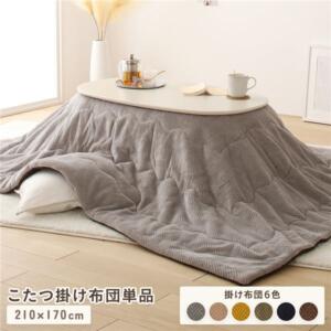 ■サイズ・色違い・関連商品■約195×180cm カーキ■約195×180cm ネイビー■約195×180cm ブラウン■約195×180cm グレー■約195×180cm ベージュ■約195×180cm イエロー■約210×170cm ベージュ■約210×170cm カーキ■約210×170cm ネイビー■約210×170cm ブラウン[当ページ]■約210×170cm グレー■約210×170cm イエロー関連商品の検索結果一覧はこちら■商品内容※本商品はこたつ掛け布団 単品になります。こたつ台、敷布団等は別売りになります。■こたつテーブルと布団の組み合わせは全部で18colorsこたつテーブル 3色:ホワイトウォッシュ、ナチュラル、ウォルナットブラウンこたつ掛け布団 6色:グレー、ベージュ、イエロー、カーキ、ネイビー、ブラウン■お部屋が優しい雰囲気にDesign 丸みを帯びた、可愛いフォルムSize コンパクトなサイズ感Function 収納に便利な折りたたみ式こたつ掛け布団セットもあります!■丸みを帯びた、やさしいフォルム角がない、丸みがあるデザイン。優しいフォルムでお子様がいるご家庭にも安心です。天板はUV塗装汚れや水をサッと拭けるように天板にはUV塗装を施しました。■コンパクトなサイズ感一人暮らしにもちょうどいいコンパクトなサイズです。幅90cm×奥行50cm■収納に便利な折りたたみ式脚は簡単に折りたためるので、収納や持ち運びに便利です。脚部を折りたたむと厚みは約10cm。使わないときはしまえて、無駄なスペースを取りません。■U字型石英管ヒーター採用・隅々までムラなく暖か 200W石英管ヒーターを採用。 じっくり温まることができます。・中間スイッチ 電源コードの中間スイッチ。 手元で簡単にオン・オフが可能です。・温度調節つまみ ヒーター本体部分で、弱〜強の温度調整ができます。■使いやすさを考えたこだわりの設計・傷防止用フェルト・ズレ防止ゴム・天板固定ネジ・コード引っ掛け金具■こたつ掛け布団とのセットもご用意セットだからすぐにコタツ族に!テーブルとこたつ布団のセットなので、コーディネート、サイズの失敗なし!■こたつ布団は、贅沢な肌ざわりマイクロファイバーのなめらかで、ふわふわ柔らかな感触です。肌に直接触れる裏地も、こだわりのふわふわ素材。※全色裏地のカラーはブラウンになります。■あたたかさを逃がさない、3層構造・こたつ布団の内部には冷気を逃がすアルミシートが入っているため保温性ばっちり。・手洗いOK! 汚れたらすぐに洗えて、毎日清潔を保てます。・専用の収納ケース付き オフシーズンは専用の収納袋に入れてコンパクトに保管が可能です。■商品スペック【掛け布団サイズ(約)】195×180cm210×170cm【対応こたつサイズ(約)】195×180cm:幅75〜85×奥行60〜70cm210×170cm:幅90〜100×奥行50〜60cm【素材】側地:ポリエステル100%中材:ポリエステル100%【カラー】イエロー、グレー、ブラウン、ネイビー、カーキ、ベージュ【梱包サイズ(約)】195×180cm:幅60×奥行40×高さ20cm210×170cm:幅79×奥行49×高さ14cm【原産国】中国製【ご注意事項】・こたつ台、敷布団等は別売りです。・洗濯は手洗いをしてください。・本商品は、北海道・沖縄・離島への配送はいたしかねます。・本商品は、配送希望日、時間帯をご指定可能です。 -配送希望日は出荷目安(最長)の 5 – 28日後の間でご指定ください。 -最短でのお届けをご希望の場合は「指定なし」を選択してください。 ※配送先エリア等でご希望に添えない場合がございます。 ※在庫状況により、出荷が遅れる場合がございます。・ご購入前に商品が階段や廊下を通ることが可能かをご確認ください。・配送は全て玄関先でのお渡しとなります。予めご了承ください。・掲載写真は表記サイズと異なる場合がございます。・画面上のカラーはご使用ブラウザやモニターの設定により、実物とは若干異なる場合がございます。 あらかじめご了承の上、ご注文をお願いいたします。■送料・配送についての注意事項●本商品の出荷目安は【2 – 4営業日 ※土日・祝除く】となります。●お取り寄せ商品のため、稀にご注文入れ違い等により欠品・遅延となる場合がございます。●本商品は仕入元より配送となるため、北海道・沖縄・離島への配送はできません。