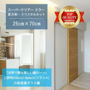 \今だけP2倍+送料無料!!/ 【鏡 サイズ オーダー ミラー】 250x700mm 長方形 クリスタルカット 鏡 壁掛け ミラー 日本製 5mm厚 玄関 リビング 寝室 トイレ 壁掛け鏡 ウォールミラー 姿見 全身 玄関鏡 トイレ鏡 オフィス鏡 軽量 角型 四角 四角形