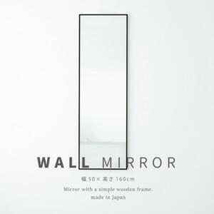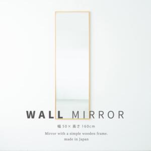 細枠ウォールミラー(50×160)(ブラウン/茶) 天然木 姿見鏡 ワイド 高級感 木製 飛散防止加工 壁掛け 北欧風 玄関 トイレ 洗面 日本製 完成品 NK-25