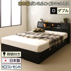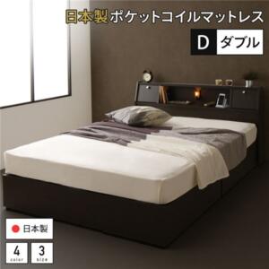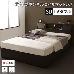ベッド 日本製 収納付き 引き出し付き 木製 照明付き 棚付き 宮付き コンセント付き シングル 海外製ボンネルコイルマットレス付き『AMI』アミ ダークブラウン