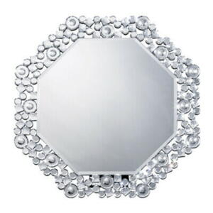 \本日300円クーポン進呈/鏡 壁掛け ミラークリスタル81007 81016 完成品 クロシオ 高級感 キラキラ エレガント 店舗 姫系 アクセント 八角形 丸形 シルバー スタンド 卓上
