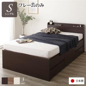 ■サイズ・色違い・関連商品 セミシングル(全3色) フレームのみ 国産ポケットコイルマットレス付き シングル(全3色) フレームのみ 国産ポケットコイルマットレス付き セミダブル(全3色) フレームのみ 国産ポケットコイルマットレス付き セミシングル(全3色) フレームのみ 国産ポケットコイルマットレス付き シングル(全3色) フレームのみ 国産ポケットコイルマットレス付き セミダブル(全3色) フレームのみ 国産ポケットコイルマットレス付き ■商品内容本商品は「組立設置サービス利用する」配送でございます。【配送希望日時指定について】 ・この商品は、配送希望日のご指定が可能です。時間帯のご指定はお受けできかねます。 ・注文時、最終確認画面にて配送希望日をご指定ください。 ・商品の入荷状況、配送地域、配送業者の状況等によって、 配送日時のご希望に沿えない可能性がございます。 ・ご注文が土日祝日の前日の場合、最短での配送希望日を承ることが できない可能性がございます。 ・最短での配送をご希望の場合は、指定なしでご注文ください。【ご注意事項】 ・商品注文後のキャンセルや返品は承りかねます。 ・本商品は離島への配送ができません。 ・一部地域への配送時には追加送料がかかる場合がございます。 ・大型商品は出荷から到着までに 2 – 5 日程度かかる場合がございます。 ・配送員が商品の開梱・組立・ 設置作業を行います。商品説明【デザイン】部屋が広くなるフラットヘッドボード ・省スペースで圧迫感のないシンプルなデザイン スペースにゆとりが生まれます ・空間が広がる理由は「約3cm」 一般的なベッドよりも20cm近くコンパクトに、 さらに収納力も抜群だからチェストも不要に。 【収納】長尺物も入るBOX収納構造 ・大容量のBOX収納構造 頑丈で、ホコリの侵入も防ぎ、長物も収納できる ・BOX構造とは 引き出し部の上下左右が囲われた箱のような構造なので、 丈夫でホコリの侵入を防ぎます。 ・画期的な収納構造 一般的なベッドは荷重を支えるサイドフレームが必要ですが、 BOX構造は不要、その部分を収納スペースとして有効活用できます。 さらに、引き出しのない空間は長物などを収納できる大容量スペースになります。 ・収納部は組み立て済み 引き出し収納部はすべて組み立て済でお届け。組み立て簡単です。 【品質】安心の日本製 使いやすく丈夫 ・ながく使える日本製品質 家具作りのプロによって設計された安心の数々 ・細部までこだわった、使いやすさの追求 -引出しはスライドレールを採用。たくさん収納しても開閉スムーズ -長物収納部分の床板は取っ手付き。大きな床板も楽々開けられます。 -引き出しの底板にも化粧板を使用。木クズが出にくく見た目にも美しい。 -引き出しの底には補強入り。収納物をしっかり支え底が抜けません。 ・ぴったり並べて使える 2台並べても隙間ができないので、1台の大きなベッドとしてご利用も。 ・耐荷重180kgの頑丈設計 お布団でも安心してご利用いただけます。 ・職人と機械がつくりあげる「日本品質」 創業50年、関東の老舗国産家具メーカー。創業以来、収納家具の生産技術を 徹底的に磨き続け完成させたのが職人と機械を組み合わせた 半自動一貫生産ライン。そこで作られる日本の住環境に寄り添うベッドは 設計・製造・組立のサイズまで妥協せず、丁寧に作り上げた「日本品質」 ぜひ、その使いやすさをご実感ください。 ・低ホルムアルデヒドF☆☆☆☆ ホルムアルデヒドはシックハウス症候群になる原因の一つで家具や 芯材や塗装にも含まれています。ご家族皆様が安心して ご利用いただける本商品は低ホルムアルデヒドF☆☆☆☆を使用しております。【国産ポケットコイルマットレスもご用意】 ・体型や姿勢の凹凸に合わせてフィット コイルが1つずつ不織布の袋に包まれ独立しており、 荷重のかかる部分だけ沈み込みます。 身体のラインにそって支えるため体圧分散にすぐれています。【組立設置サービス】 ・組立が不安な方は本サービスをご利用ください。 配送スタッフ2名が搬入、開梱、組立、設置、梱包材廃棄を行います。■商品スペック■ベッドフレーム本体【サイズ】 セミシングル:(約)幅 83×長さ199.5×高さ80cm シングル :(約)幅 98×長さ199.5×高さ80cm セミダブル :(約)幅120×長さ199.5×高さ80cm 床面までの高さ:(約)30cm【収納部有効内寸】 引き出し :(約)幅87×奥行き 38×深さ15cm 長物収納 セミシングル:(約)幅29×奥行き193×深さ23cm シングル :(約)幅44×奥行き193×深さ23cm セミダブル :(約)幅66×奥行き193×深さ23cm【材質】プリント紙化粧繊維板、引き出し:桐集成材【カラー】ダークブラウン、アイボリー、ナチュラル【生産国】日本【梱包サイズ】個口数:4 セミシングル:(約)7× 86×83cm・6× 86×33cm・98×36×10cm・33×196×56cm シングル :(約)7×101×83cm・6×101×33cm・98×51×10cm・33×196×56cm セミダブル :(約)7×123×83cm・6×123×33cm・98×73×10cm・33×196×56cm■国産ポケットコイルマットレス【サイズ】 セミシングル:(約)