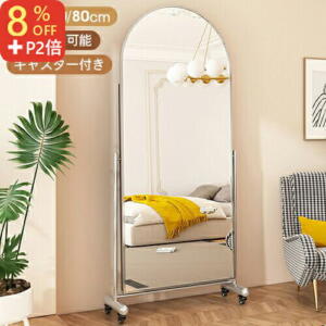 ミラエート アーチ型全身鏡【飛散防止】 姿見鏡 スタンドミラー 壁掛け 大型 鏡 大きい おしゃれ スタンド 玄関 寝室 (シルバー, 150×40)
