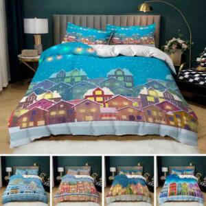 布団カバー 枕カバー 大人用 クリスマス 雪の結晶 ベル 幾何学模様 デジタルプリント ポリエステル おしゃれ モダン 寝室 インテリア 寝具
