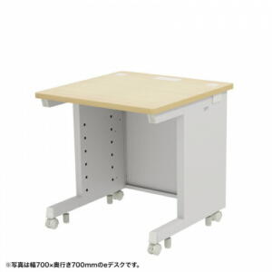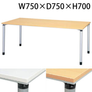CMS7575 6-165-6397のスペックは、幅750mm、奥行750mm、高さ700mmです。 天板は1枚で、配線機能はありません。 天板素材はメラミン化粧板、エッジはスクエアエッジです。 脚部は4本脚で、丸脚仕様です。 キャスターは付いておらず、収納機能もありません。
