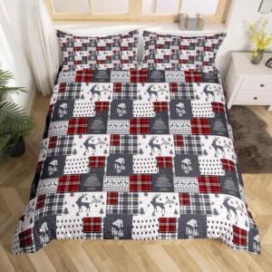 布団カバー 枕カバーセット クマ 動物柄 アニメ風 野生動物 カントリースタイル レッド 化繊 デジタルプリント モダンシンプル 寝具 3点セット 寝室 インテリア