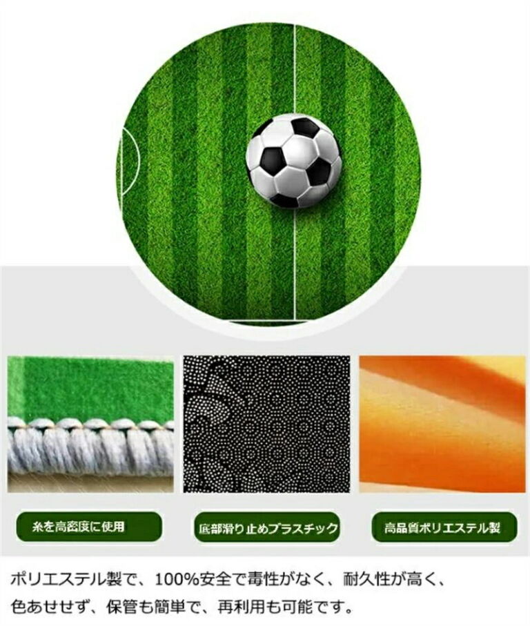 商品詳細情報 ポイント 素材:ポリエステル繊維(ポリエステル) 糸を高密度に使用、高い強度と靱性を持ち、耐久性と防音性に優れています。 サッカーグランドをモチーフにした遊び心溢れるハンドメイドデザインラグです。ふわふわで、お部屋に明るくなる、陽気で、親切な感じをあげます。 『速乾性』『吸水性』に優れ、通気性も良いことから夏でもさらさら感を失いません。 滑り止め付きますので、走り回る小さな子供やペットがいる家庭でも安心にご利用頂けます。 気軽に折り畳め、洗濯機で洗えます。お手入れ簡単、いつも清潔を保てる健康に優しいラグマットです。 幅広い用途:このカーペットは、 ホワイエ、キッチン、ベッドルーム、バスルーム、ベッドサイド、バルコニー、出窓、ソファ、エントランス、バスルーム、廊下通路ホテル、ホテル、学校、ワークショップ、オフィス、ゲームルーム、トレーニングルームなど。 注意事項: ※商品輸送の際に折りたたんでお届けするため、開封時に折りジワ、歪み?寸法不足等の変形がありますが、一週間ほどご使用になれば、ゆっくりと回復します。 洗濯後は直射日光を避けて風通しのいい場所で陰干ししてください。 宅配袋に直接商品を入れ込む形で梱包しておりますので、外見が悪くなってしまいますが、ご理解いただけると幸いです。 梱包袋の中で商品が膨らんでいる状態ですので、開封時に中の商品も一緒に切ってしまわないようにご注意ください。 商品到着時の折りシワについては時間が経つと徐々になくなります。開封時の匂いが気になる場合は風通しのいい場所で陰干ししてください。 サイズ 80*120cm 120*160cm 140*200cm 160*230cm 180*280cm 200*300cm 200*400cm 製品サイズに個体差があるため表記サイズより1〜3%の誤差がある場合がございます。