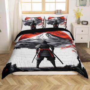 布団カバー 枕カバーセット メンズ 男性用 浮世絵柄 侍 武士 富士山 赤富士 桜 和柄 和風 ポリエステル デジタルプリント 三点セット 寝室 インテリア