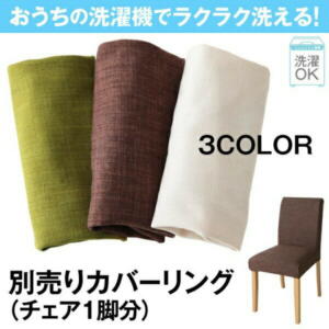■関連商品本商品のサイズ、色違い、関連商品はこちら■商品内容おうちの洗濯機でラクラク洗える! カバーリングダイニング【Wash】ウォッシュ「あ、こぼしちゃった!!」でもカバーが洗えるから大丈夫。気軽にザブザブ。おうちの洗濯機で洗えて、いつも清潔。3Color washable CoveringWASHABLEカバーが洗えるから、心に余裕♪毎日の食事シーンで、お子様のいるご家庭で心配なのは食べ汚し。しかも小さいお子様は、チェアカバーで汚れた手を拭いちゃうなんてこともしばしば…。【ウォッシュ】なら、汚れたカバーを取り外して洗濯機にポンっ。汚れてしまわないかのソワソワやイライラが解消。気持ち穏やかに、食卓を囲めるようになるでしょう。※お洗濯の際は、必ず洗濯表示をご確認ください。やっと見つけた!汚れを気にしなくて大丈夫なファブリックチェア&ベンチファブリックのフルカバーチェアは、見た目が可愛く、座り心地も抜群。だけど、「汚れてしまったらどうしよう…」となかなか購入に踏み切れないもの。カバーリングであれば、その悩みも解消。汚れが気になってしまう方のためのおうちで洗えるカバーリングアイテムです。カバーは取り外し簡単なマジックテープ式。さっと取り外すことができます。いつでも清潔、ストレスフリーに。汚れを気にしないで使える!育ち盛りのお子様がいるご家庭で、気兼ねなくお使いいただけます。テーブルを毎回拭くように、チェアカバーも汚れる度に洗って清潔キレイ。≪ユーザーボイス≫Covering Chair&Bench 【ウォッシュ】はこんな方にオススメ!主婦(30代)まだまだ育ち盛りの子供が2人もいるので、食事の時は汚れとの戦いです。そんな時見つけたのがカバーリングのチェア。ずっと欲しいなとは思っていたけれど、他の商品はお値段が高く、洗濯もドライクリーニングに出さなければいけないものばかり。色々探した中でようやく見つけたのがこの商品!おうちの洗濯機で洗えるなんて!色も3色あるので、子供たちと一緒に選びました。お気に入りのチェアで、汚れを気にしないで食事ができるから、前よりも食卓に笑顔が増えた気がします。≪チェア≫座り心地、ふっくら。椅子の座面は厚みのあるウレタンを使用し、ゆったりまったり寛げて、長時間座っていても疲れにくい造り。身体に触れるものだから、さらっとした肌触りのよい生地を使用しました。ウェービングベルト仕様≪ベンチ≫自由自在にお部屋をアレンジ。時にはベンチだけを移動して…という使い方も可能。持ち運びも楽々で、こんな風に壁付けすれば子どもが遊べるスペースだって作れちゃいます。(Check!)1枚から購入できる別売りカバー!洗い買いに!お好きなカラーを欲しい数だけ!スペアがあると、お洗濯を待たずに着せ替えできることはもちろん、ローテーションで使えばカバーも長持ちします。≪テーブル≫シンプルで美しい、北欧風デザインテーブル美しい木目の天板は仕上がりも美しく、滑らかで心地の良い手触りです。ウレタン塗装の為、お手入れが簡単なのも特徴です。丸みを帯びた天板角と脚のフォルムはお子様にも安心。シンプル故に、様々なテイストにも合わせて頂けます。床を傷つけないように、脚裏にはフェルトを施しています。≪Color Variation≫チェア・ベンチのカラーは全3色組み合わせは15通り○4点セットの場合・同色ブラウンアイボリーグリーン・ミックスブラウン×アイボリーアイボリー×ブラウングリーン×ブラウンブラウン×グリーンアイボリー×グリーングリーン×アイボリー○5点セットの場合・同色ブラウンアイボリーグリーン・ミックスブラウン×アイボリーブラウン×グリーンアイボリー×グリーン≪Set Variation≫4点セットA Table(W120)+Chair×2+Bench4点セットB Table(W150)+Chair×2+Bench5点セットA Table(W120)+Chair×45点セットB Table(W150)+Chair×4単品でもご購入いただけます。別売りカバーリング(1枚)for Chairfor BenchTable(W120)Table(W150)Chair(同色2脚組)Bench ■商品スペックおうちの洗濯機でラクラク洗える! カバーリングダイニング【Wash】ウォッシュ■テーブル(W120/W150)【サイズ】W120:幅120×奥行75×高さ70cm W150:幅150×奥行75×高さ70cm【材質】天板‐天然木オーク材 突板 仕上げ‐ウレタン塗装 脚部‐天然木ラバーウッド材【カラー】ナチュラル【製品重量】W120:25kg W150:27kg【梱包数】1【梱包サイズ/重量】W120:幅130×奥行90×高さ12cm/27kg W150:幅160×奥行95×高さ12cm/29kg【生産国】ベトナム※組立品■カバーリングチェア(2脚組)【サイズ】幅40×奥行48×高さ83(座面高43)cm【材質】フレーム:天然木ラバーウッド材 クッション材:ウェービングベルト、ウレタンフォーム【製品重量】4kg(1脚)【梱包数】1(2脚1梱包)【梱包サイズ/重量】85×45×29cm/9kg【生産国】マレーシア※組立品■カバーリングベンチ【サイズ】幅111×奥行40×高さ45cm【材質】フレーム:天然木ラバーウッド材 クッション材:ウェービングベルト、ウレタンフォーム【製品重量】6kg【梱包数】1【梱包サイズ/重量】117×45×14cm/7kg【生産国】マレーシア※組立