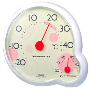 ■サイズ・色違い・関連商品■ブルー■イエロー[当ページ]■ホワイト■商品内容かわいらしく、さりげなく、温度・湿度を管理。 マルとマルがくっついた、ちょっと変わった形の温湿度計。 みずたま模様デザインが、かわいい高感度の日本製温湿度計です。 折りたたみスタンド付きで、壁掛け・卓上どちらでもご使用いただけます。 ■商品スペック【サイズ】120×110×24mm【重量】64g【材質】本体:ABS,フロント:アクリル【カラー】イエロー【精度】温度計:-10〜40℃・・・±2℃以内 湿度計:常温時(20〜25%)35%〜85%・・・±5%以内■送料・配送についての注意事項●本商品の出荷目安は【3 – 8営業日 ※土日・祝除く】となります。●お取り寄せ商品のため、稀にご注文入れ違い等により欠品・遅延となる場合がございます。●本商品は仕入元より配送となるため、沖縄・離島への配送はできません。[ CR-140Y ]