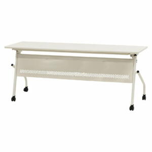 商品詳細(サイズ)■天板:メラミン化粧板(28mm厚)フラッシュ加工■エッジ:共張り■フレーム:スチール(角26mm)メラミン焼付塗装(ブラック)■機能:棚付 折脚(バネ式)■サイズ:W1800×D450~600×H700■折りたたみ時:H98■補足:完成品/サイズ選択/カラー選択/折脚タイプ/グリーン購入法適合北海道、沖縄、離島及び中継を伴う場合は、追加送料が必要ですので別途ご案内致します。天板カラーアイボリーチークローズ