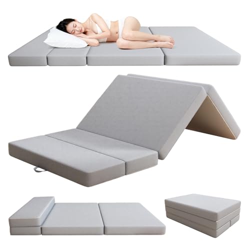 SynthoSpace マットレス シングル 三つ折り 高反発 + 低反発 二層式 両面使える 5年保証 収納袋付き 抗菌防臭加工 厚さ10cm 寝返りサポート 体圧分散 通気性 ベッド用 敷布団 ベッドマット 洗えるカバー 195*97*10CM