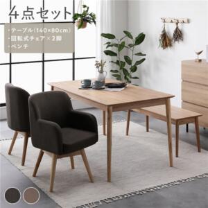 【ポイント20倍】ダイニングセット 4点セット ダイニングテーブル 約幅140cm ベンチ ダイニングチェア×2脚 モカ 回転式 天然木 木製 組立品