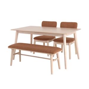 ダイニング 4点セット ダイニングテーブルセット 回転チェア ベンチ テーブル幅135cm 木製 ブラッシング加工 ナチュラル NA 組立品【代引不可】[21]