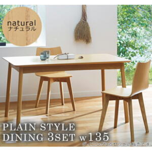 ■サイズ・色違い・関連商品■ベンチ95cm幅 ナチュラル■ベンチ95cm幅 ダークブラウン■回転チェア1脚 ダークブラウン■回転チェア1脚 ナチュラル■ベンチ125cm幅 ナチュラル■ベンチ125cm幅 ダークブラウン■肘なしチェア2脚セット ナチュラル■肘なしチェア2脚セット ダークブラウン■回転チェア2脚セット ナチュラル■回転チェア2脚セット ダークブラウン■ダイニングテーブル ダークブラウン■ダイニングテーブル ナチュラル■ダイニング4点セット(ダイニングテーブル+肘なしチェア2脚+ベンチ) ナチュラル■ダイニング4点セット(ダイニングテーブル+肘なしチェア2脚+ベンチ) ダークブラウン■ダイニング4点セット(ダイニングテーブル+回転チェア2脚+ベンチ) ナチュラル[当ページ]■ダイニング4点セット(ダイニングテーブル+回転チェア2脚+ベンチ) ダークブラウン■ダイニング5点セット(ダイニングテーブル+肘なしチェア4脚) ナチュラル■ダイニング5点セット(ダイニングテーブル+肘なしチェア4脚) ダークブラウン■ダイニング5点セット(ダイニングテーブル+回転チェア4脚) ナチュラル■ダイニング5点セット(ダイニングテーブル+回転チェア4脚) ダークブラウン関連商品の検索結果一覧はこちら■商品内容和風ダイニング。全体にブラッシング加工を施しており、落ち着いた印象のダイニングに仕上げています。椅子は360度回転し、立ち座りに便利です。【注意事項】●直射日光の当たる場所又は熱・火は避けて下さい。●必ず本来の用途だけにご使用下さい。●水平を保てる場所に設置し、ご使用して下さい。●こちらは一般家庭向け商品となり業務使用を前提とした構造になっておりません。■商品スペック【セット内容】4点セット:テーブル×1台、回転チェア×2脚、ベンチ×1脚【素材】チェア・ベンチ本体:天然木(ブラッシング加工)テーブル本体:天然木(ブラッシング加工)・ラッカー塗装【サイズ】チェア:幅57.5×奥行52×高さ85cm(座面高41)ベンチ:幅95×奥行38×高さ43cmテーブル:幅135×奥行80×高さ70cm【本体重量】チェア:8kgベンチ:9.8kgテーブル:34kg【カラー】ナチュラル【ご注意事項】・商品注文後のキャンセルや返品は承りかねます。・本商品は、北海道・沖縄・離島への配送はいたしかねます。あらかじめご了承ください。■送料・配送についての注意事項●本商品の出荷目安は【2 – 6営業日 ※土日・祝除く】となります。●お取り寄せ商品のため、稀にご注文入れ違い等により欠品・遅延となる場合がございます。●本商品は仕入元より配送となるため、北海道・沖縄・離島への配送はできません。