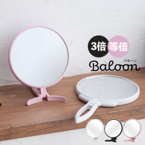 手鏡 BALLOON(パステルピンク) ミラー/鏡/卓上ミラー/2WAY/3倍鏡/ミニサイズ/メイク/スリム/飛散防止加工/角度調整可能/完成品/NK-295 (代引不可)