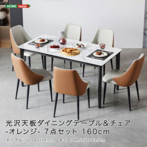 高級感のある天板とユニークな形状のテーブルと、ひじ掛け付きで座り心地の良いチェア6脚を組み合わせたダイニングセットです。日常の生活を彩ります。【商品サイズ】テーブル:160×80×74.1cm、チェア:63×57.5×79.5cm【商品重量】椅子:7.4kgテーブル:48.3kg【梱包サイズ】(5-1)81.5×68.5×54cm(5-2)81.5×68.5×54cm(5-3)81.5×68.5×54cm(5-4)167×87×7cm(5-5)51×49×77cm【梱包重量】(5-1)18.3kg(5-2)18.3kg(5-3)18.3kg(5-4)38.5kg(5-5)16.8kg【カラー】ホワイト×ブラウン【素材】[テーブル]天板:メラミン板脚:ステンレス鋼[椅子]背もたれ:ウレタン脚:鉄座面:合皮【代引きについて】こちらの商品は、代引きでの出荷は受け付けておりません。【配送について】製造メーカーより直接の出荷となるため、代引きでの出荷は受け付けておりません。こちらの商品は日時指定不可となります。【出荷日からお届けにかかる日数について】お届け先の地域によって日数が異なります。※運送会社から配達前にユーザー様にお電話にて配達日時の調整をする形となります。※商品2個以上配達の場合、別途お見積りが必要ございます。予めご確認下さいませ。※こちらの商品はご注文後のキャンセルは対応できません。【送料について】北海道、沖縄、離島は送料を頂きます。ダイニングテーブル&チェアダイニングテーブル&チェアオレンジ/5点セットダイニングテーブル&チェアネイビー/5点セットダイニングテーブル&チェアブラウン/5点セットダイニングテーブル&チェアブラウン/7点セット