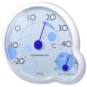 おすすめ・人気の商品■サイズ・色違い・関連商品■ブルー■イエロー■ホワイト[当ページ]■商品内容かわいらしく、さりげなく、温度・湿度を管理。 マルとマルがくっついた、ちょっと変わった形の温湿度計。 みずたま模様デザインが、かわいい高感度の日本製温湿度計です。 折りたたみスタンド付きで、壁掛け・卓上どちらでもご使用いただけます。 ■商品スペック【サイズ】120×110×24mm【重量】64g【材質】本体:ABS,フロント:アクリル【カラー】ホワイト【精度】温度計:-10〜40℃・・・±2℃以内 湿度計:常温時(20〜25%)35%〜85%・・・±5%以内■送料・配送についての注意事項●本商品の出荷目安は【3 – 8営業日 ※土日・祝除く】となります。●お取り寄せ商品のため、稀にご注文入れ違い等により欠品・遅延となる場合がございます。●本商品は仕入元より配送となるため、沖縄・離島への配送はできません。[ CR-140W ]