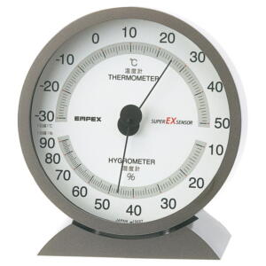 【ふるさと納税】 スーパーEX高品質温・湿度計 EX-2718 温度計 高精度 本格派 感染症対策 健康管理 大きな文字盤 アナログ式 電池不要 置き掛け兼用 計測器 みずさわ気象計器 エンペックス社 [AJ075]