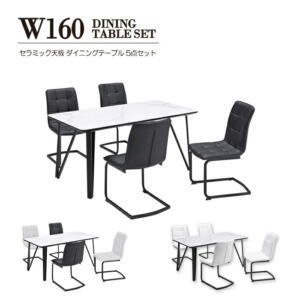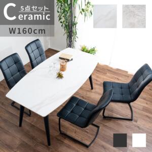 【10/24 20:00〜 全商品ポイント2倍!!】 ダイニングテーブルセット 4人掛け ダイニングテーブル セラミック おしゃれ モダン セラミックテーブル 幅160cm ダイニングチェア 5点セット アジャスター付き スチール脚 4本脚 ダイニング 角丸仕様 楕円形