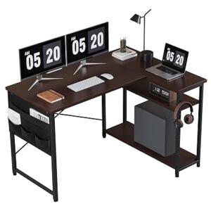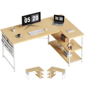 YeTomパソコンデスク机学習机右棚左棚幅107cmゲーミングデスクl字デスクpcデスク収納袋付き勉強机コーナーデスク本棚付きビンテージ