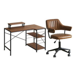 ヴィンテージ風 ガス圧昇降 デスクチェアセット 【GABBY×Lubbock】 デスクチェアセット パソコンデスク ヴィンテージデスク 作業台 PCデスク テレワーク コンパクト 勉強机 鉄脚 レザー(代引不可)【送料無料】