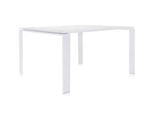 カリガリスが得意とする伸長式テーブル。金属脚ならではのシャープなシルエットが特長となっています。本商品の天板は、傷に強く、耐熱性や耐水性に優れたメラミン素材。お手入れも簡単です。天板は幅130cm、190cmの2段階でお使いいただけます。