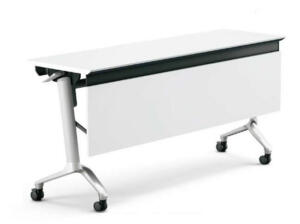 THR-156PNC-W982のスペックは、幅1500mm、奥行600mm、高さ720mmです。 天板は1枚で、配線機能はありません。 天板素材はメラミン化粧板で、配線取出口はありません。 エッジはスクエアエッジ、脚部はT字脚、キャスター付きです。 収納は不可で、幕板はあり、棚はありません。