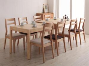 ■関連商品本商品のサイズ、色違い、関連商品はこちら■商品内容TorresSlide Extension Dining Setスライド式でらくらく伸縮×最大235cmの超ワイドサイズ最大235cm スライド伸縮テーブル ダイニングセット【Torres】トーレス_______________________Lifestyle暮らしを彩るエクステンションダイニング!普段は普通サイズでいいけれど、友達が集まる時、たくさんの料理を並べたい時、家族が増える時・・・、「もう少しテーブルが広かったらなあ…。」なんて思うことはありませんか?そんなとき活躍するのが、天板を伸長できるエクステンションテーブル。トーレスはスライド式の伸長テーブルで手軽に扱え、4点から最大9点のセット組をご用意しました。「こんなダイニングが欲しかった!」とあなたの希望を必ず叶えます!!_______________________________何かと便利な高低差!伸縮テーブル部分は一段低くなっているため、お子様が勉強するスペースにはぴったりです。スペースの有効活用!普段は伸長テーブルを閉じることで、部屋の空間を有効にお使い頂けます。______________________________________TABLE片手でらくらく伸長!スライド式なので、忙しいママさんも片手で簡単に動かすことができます。伸長部分はちょっとした物置きにできるのも嬉しいところ。表面は美しいアッシュ材の突板を使用脚の先端部分には、動かしやすいキャスター付き135cmから最大235cmまで、らくらく伸長できます!!___________________________________________CHAIR飽きの来ないシンプルなデザインシンプルだからこそ、追求できた見た目と座り心地の両立。故に長く愛されるチェアの誕生です。くつろぎの追求背のあたる部分には、最大限にくつろぎをもたらす絶妙な角度を付けています。また座面には長く座っていても疲れにくいクッション性を実現。どれを取っても優秀なチェアです。優しい肌触りの生地を使った座面。いつまでも座っていたくなる、家族の集う場所にピッタリです。カラーはブラウンとベージュの2色をご用意。____________________________________________BENCH便利が広がるベンチセットダイニング以外のところでも使用できる場所を問わず、用途性の高いベンチは暮らしを豊かにしてくれます。お子さんのいる家庭にはぴったり。子ども部屋などに置いても、かわいいデザインとなっています。玄関に置いても利便性は抜群。急いでいる朝や、来客時にも活躍すること間違いなし。 ■商品スペック最大235cm スライド伸縮テーブル ダイニングセット【Torres】トーレス■テーブル(W135-235)【サイズ】幅135-235×奥行80×高さ72cm【材質】天板:天然木アッシュ材 突板 仕上げ:ウレタン塗装 脚:天然木ラバーウッド材【製品重量】43kg【梱包数】1【梱包サイズ/重量】135×90×22cm/46kg【生産国】中国またはベトナム ※組立品■チェア(2脚組)【サイズ】幅42×奥行50×高さ84(座面高44.5)cm【材質】フレーム:天然木ラバーウッド材 張地:ポリエステル クッション材:ウレタンフォーム【カラー】ブラウン/ベージュ【製品重量】5kg(1脚)【梱包数】1(2脚1梱包)【梱包サイズ/重量】85×45×29cm/12kg【生産国】マレーシア※組立品■ベンチ【サイズ】111×奥行40×高さ44.5cm【材質】フレーム:天然木ラバーウッド材 張地:ポリエステル クッション材:ウェービングベルト、ウレタンフォーム【カラー】ブラウン/ベージュ【製品重量】6kg【梱包数】1【梱包サイズ/重量】111.5×41×13.5cm/7kg【生産国】マレーシア※組立品■4点セット【セット内容】テーブル、チェア×2、ベンチ×1■5点セット【セット内容】テーブル、チェア×4■6点セット【セット内容】テーブル、チェア×4、ベンチ×1■7点セット【セット内容】テーブル、チェア×6■8点セット【セット内容】テーブル、チェア×6、ベンチ×1■9点セット【セット内容】テーブル、チェア×8※サイズ、重量は概算です。※実際の商品の色にできるだけ近づけるよう撮影を行っておりますが、商品色はご使用のモニターによって実際の明るさや色と多少異なって見える場合がございます。※こちらの商品は天然木を使用した商品の為、一点一点木目が異なります。※仕様は予告なく変更になる場合がございます。予めご了承下さい。 ■送料・配送についての注意事項●お取り寄せ商品のため、稀にご注文入れ違い等により欠品・遅延となる場合がございます。●沖縄、離島および一部地域への配送時に追加送料がかかる場合がございます。●大型商品のため、複数購入時は追加送料がかかる場合がございます。