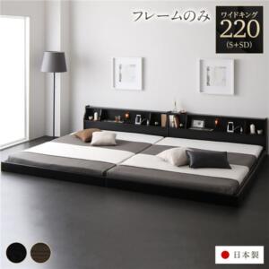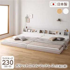 (インボイス対応)ベッド 日本製 低床 連結 ロータイプ 照明 棚付き コンセント シンプル モダン ブラウン キング(SS+SS) 海外製ポケットコイルマットレス(両面仕様)付き【代引不可】