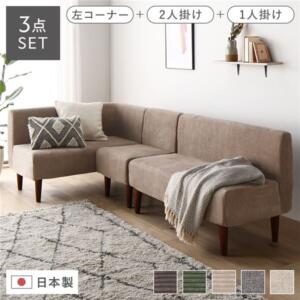 ■サイズ・色違い・関連商品関連商品の検索結果一覧はこちら■商品内容「食事」も「くつろぎ」も一緒に上質な座り心地のダイニングソファ・食事もくつろぎもこれ一台で スペースを有効活用できるソファ ダイニングにぴったりのソファです。・組み合わせをいろいろ楽しめる 間取りや部屋の広さにあわせてレイアウトを自由に変化できます。・素材・カラーをお好みで 2種類の素材、5色のカラーから選ぶことができます。・上質な座り心地でゆったりと ポケットコイルを使用しています。 安心の国産でしっかりとしたつくり。■選べる生地・コーデュロイ・ファブリック■選べるカラー・コーデュロイ ベージュ/チャコールグレー/モスグリーン・ファブリック ベージュ/アッシュグレー■選べる脚カラー・ナチュラル・ブラウン■タイプバリエーション・2点セット 右コーナー + 2人掛け 左コーナー + 2人掛け・3点セット 右コーナー + 2人掛け + 1人掛け 左コーナー + 2人掛け + 1人掛け■快適なソファダイニング空間をスペースに余裕がなくても、「食事」も「くつろぎ」も一度に叶えるソファダイニング。L字ソファなら、いつもの食事がより快適で心地よい空間に。リビングスペースに置いて、リラックスタイムにも。一台二役だから限られたスペースでも空間を有効活用でき、理想のお部屋に。■スペースを有効活用して空間にゆとりをL字ソファはソファダイニングスペースにぴったり!スペースを有効活用して、ゆとりが生まれる空間をつくることができます。・L字ソファを置いた場合、ゆとりのある空間に!■レイアウト自由自在・L字スタイル コンパクトなL字スタイルは家族や友人と過ごす場面におすすめ。 また、L字部分に足を伸ばして一人でまったり過ごすのも◎・対面スタイル シンプルな対面スタイルはまるでカフェのような雰囲気に。 テーブルの奥行きを贅沢に使えるレイアウトです。・セパレートスタイル ソファ一台一台をゆったり使えるスタイル。 セパレートが可能なソファだからこそできるレイアウトです。・ストレートスタイル 並べてレイアウトすることで、横になってくつろげる贅沢なワイドソファにもなります。■肘掛けの位置は選択可能肘掛けの位置は右アーム・左アームの選択が可能です。お部屋の間取りやお好みに合わせてお選びください。右アーム:座って右側に肘掛け左アーム:座って左側に肘掛け■ゆったり使えるサイズ感色々なくつろぎ方ができるよう、ほどよいサイズに。並んで座っても、足を伸ばしても、ゆとりあるサイズ感です。3点セットはよりリラックス感がUP。くつろぎのひとときを贅沢な時間に。■ポケットコイル使用で上質な座り心地・ヘタリにくく長持ち 座面にはポケットコイルを採用。 一般的なクッション材に比べて丈夫でへたりにくく、長くお使いいただけます。・優れた弾力性で高い復元力 柔らかく沈み込みつつも瞬時に張りのある座面へと復元します。・フィット感のある座り心地 ポケットコイルは一個一個が独立しているため、身体の凹凸にあわせて座面がフィット。■+POINT・お掃除もラクラク 脚の高さは約18.5cm お掃除ロボットも通り抜けできる高さになっているので、日々のお掃除もラクラクです。・脚裏にはフェルト付き 脚裏にはフェルトが付いているので、お部屋の床を傷つける心配もなく、安心してご使用いただけます。■信頼品質の日本製安心の日本製。職人が抜かりなく、心を込めて作っています。■商品スペック■サイズ(約)1人掛け:幅50×奥行57×68.5cm(座面高さ:最小値39cm・最大値41cm)2人掛け:幅110×奥行57×高さ68.5cm(座面高さ:最小値39cm・最大値41cm)右コーナー:幅110×奥行57×高さ68.5cm(座面高さ:最小値39cm・最大値41cm)左コーナー:幅110×奥行57×高さ68.5cm(座面高さ:最小値39cm・最大値41cm)脚の高さ:20cm(装着時 18.5cm) ※各サイズ共通■材質・コーデュロイ 表地:ポリエステル91%、ナイロン9% 中材:ウレタンフォーム 構造部材:スチールパイプ、ポケットコイルスプリング 脚部:樹脂・ファブリック 表地:ポリエステル100% 中材:ウレタンフォーム 構造部材:スチールパイプ、ポケットコイルスプリング 脚部:樹脂■重量(約)1人掛け:8kg2人掛け:15kg右コーナー:17.5kg左コーナー:17.5kg■カラー・コーデュロイ ベージュ、チャコールグレー、モスグリーン・ファブリック ベージュ、アッシュグレー■生産国日本■梱包サイズ(約)1人掛け:50×50×57cm2人掛け:112×58×50cm右コーナー:112×58×50cm左コーナー:112×58×50cm【商品に関するご注意】※各サイズ・重量は概算です。※脚本体は20cmですが、装着時に1.5cmほど食い込むため高さに誤差が生じます。あらかじめご了承ください。※座面高さは膨らみ部分を含めると最大値で41cmとなります。 尚、座った状態では座面が沈み込み高さが低くなります。 本商品はウレタン製でやわらかい素材で曲線があるため、測り方や個体差によりサイズが多少異なる場合がございます。あらかじめご了承ください。・直射日光または熱を避けてご使用